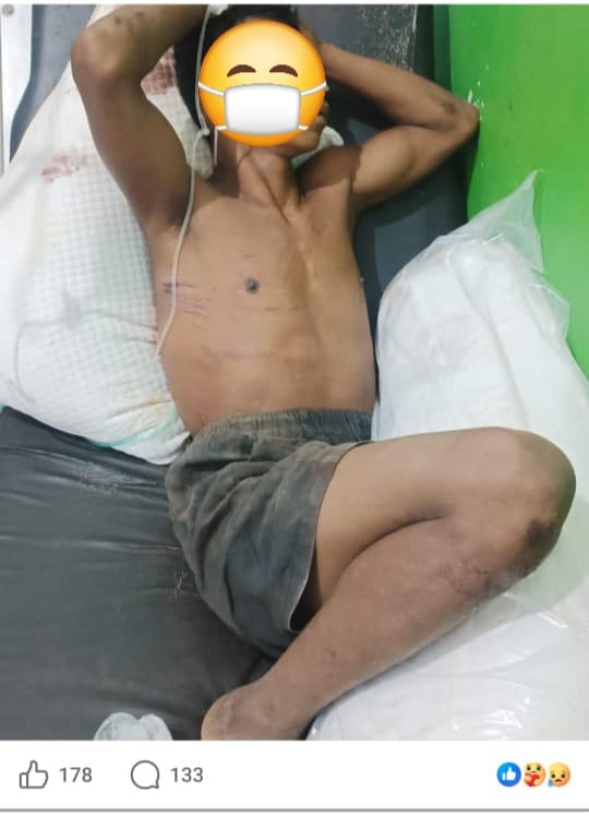 Pekerja tambang yang diduga menjadi korban kecelakaan di lokasi tambang ilegal di Poboya dirawat di rumah sakit di Palu.(Foto postingan Facebook)